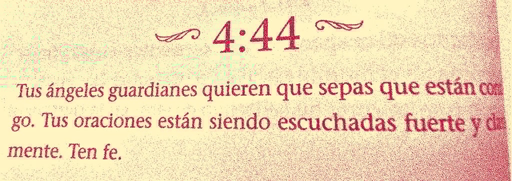 Volví a investigar. El 444 está profundamente asociado a la presencia angelical, a entidades de luz que lo utilizan para indicar acompañamiento. Resulta imposible poner en palabras lo que sentí en ese sueño. Aquellas frases, esa presencia cercana que me susurraba y me arropaba, me ofrecían una información clave… que entonces aún no supe descifrar. Hoy sé que tenía que ver conmigo. Con lo que había comenzado a despertar en mí. Eso que todos llevamos dentro. Esa “chispa”…
