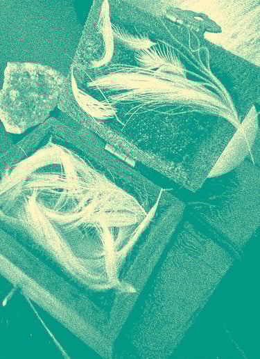 A partir de ese día comencé a encontrar plumitas blancas en lugares inesperados. Las fui recogiendo y guardando con un respeto sagrado. Poco a poco empecé a comprender que me las dejaban mis familiares trascendidos. Yo, como gesto de gratitud por su acompañamiento constante, guardaba las plumitas en una cajita que había comprado con mi familia cuando era pequeña, en un viaje a Túnez, grabada con mi nombre y unas estrellas. Con el tiempo, se convertiría en mi cofrecito de los ángeles.